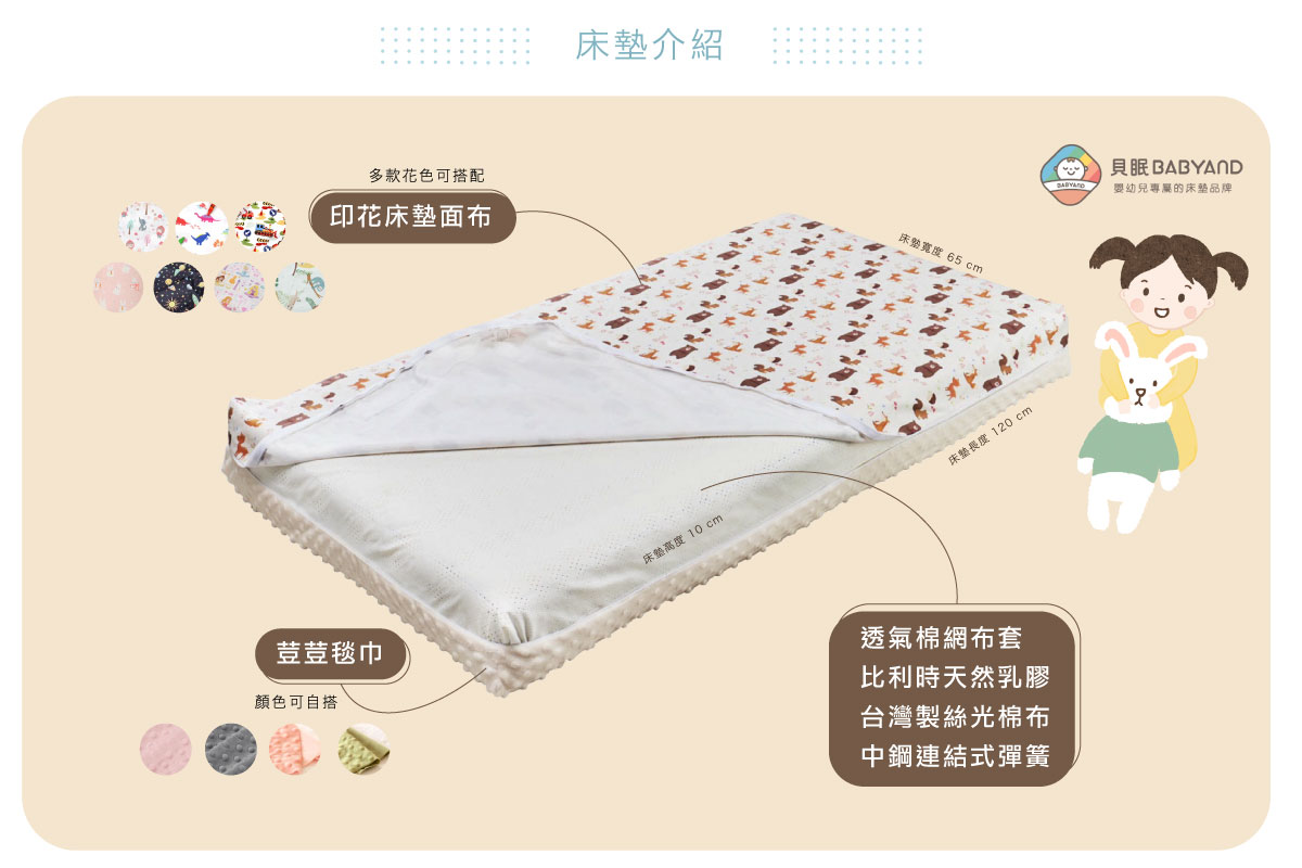連結式彈簧的選用是貝眠嬰幼童床墊的最大特點,