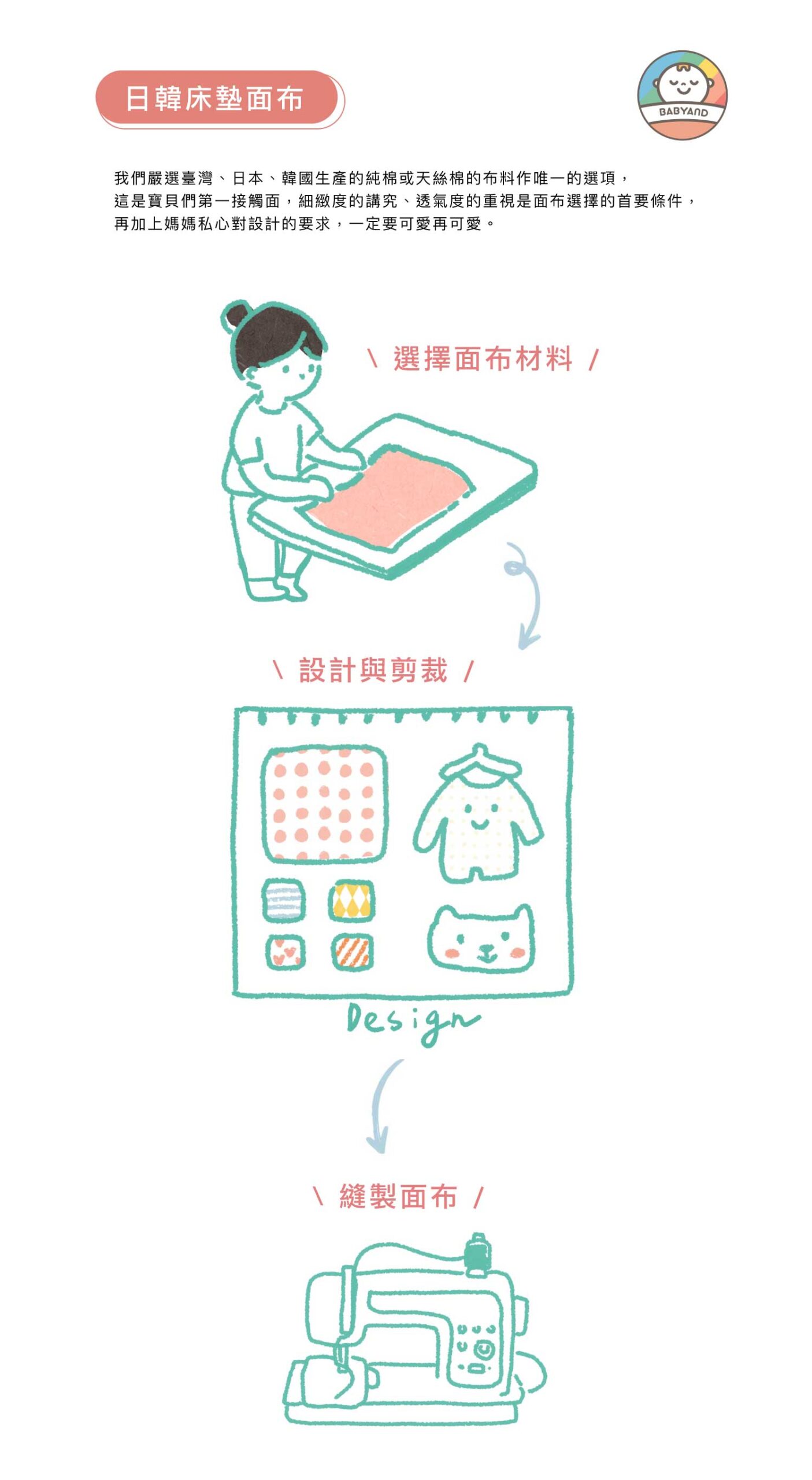 這是寶貝們第一接觸面,細緻度的講究、透氣度的重視是面布選擇的首要條件,
